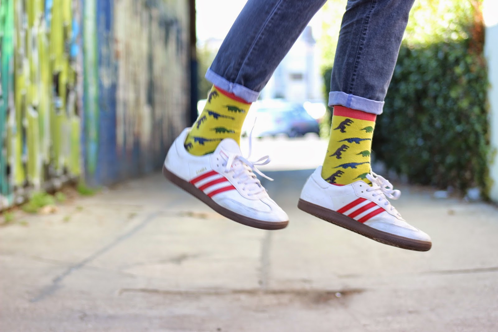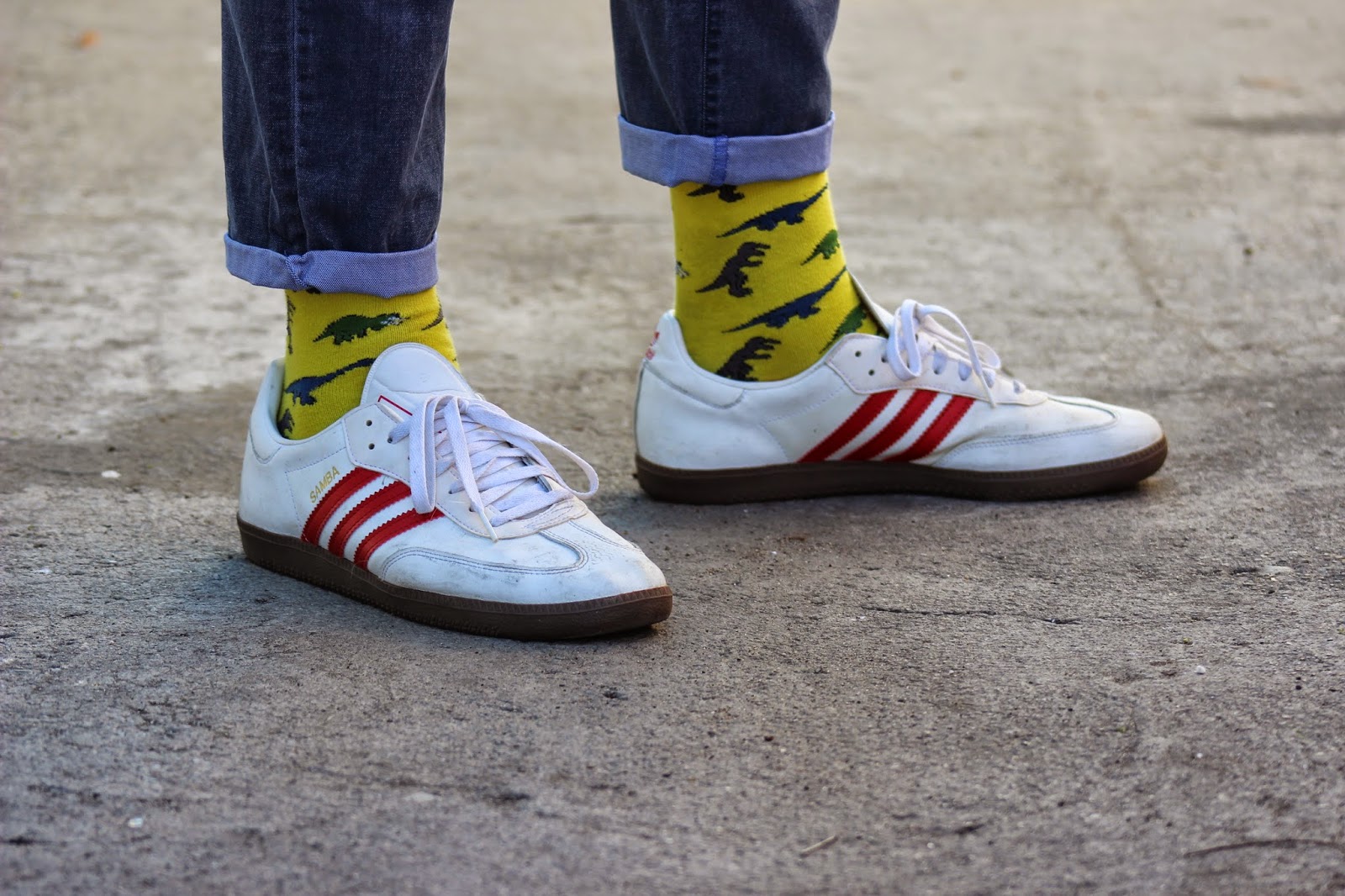 Dinosaur socks! I’m feeling a little crazy today. The weather’s nice, I did some rapping (www.thick7.com) and overall am feeling good, so I decided to bust out one of my favorite pair of socks.