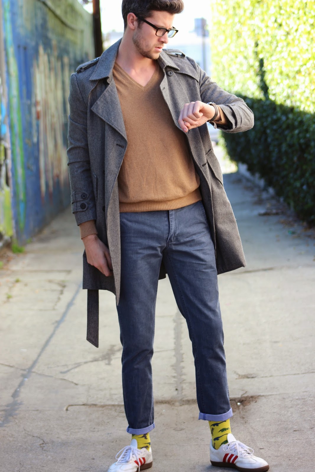 It’s “winter” in LA, and I’m taking full advantage by layering up a lightweight Zara sweater underneath my vintage double breasted trench coat. Also, these chino pants by Hawkings McGill are a great alternative to jeans, even giving the vibe that they might be denim, which they’re not. I oftentimes still go for the cuffed pant legs in winter because it better showcases my sock choice. The rolled cuff is pretty commonplace these days, even the least fashion forward can pull it off without any worry of standing out or feeling uncomfortable.