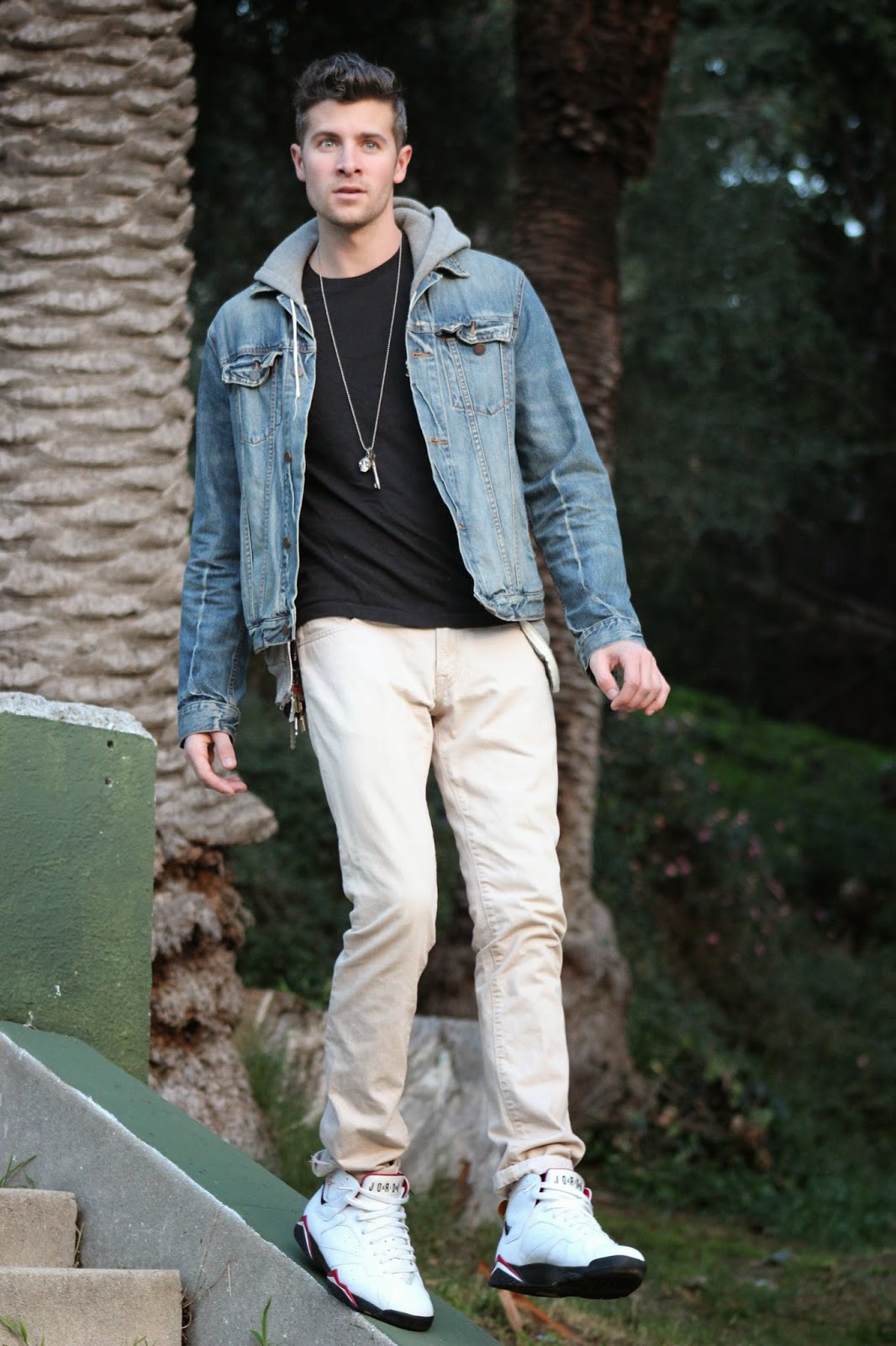 Obviously I love sneakers, so throwing some of your favorites into an outfit like this is a great way to add some fun detail. Basketball shoes can be tough for me because I don’t like to pair them with an outfit that makes me look like I’m trying to be someone I’m not. By contrasting them with the hipster-ish denim on denim, it’s more about showing that I care about what shoes I put on my feet than it is a statement of trying to be Eminem circa-2004.