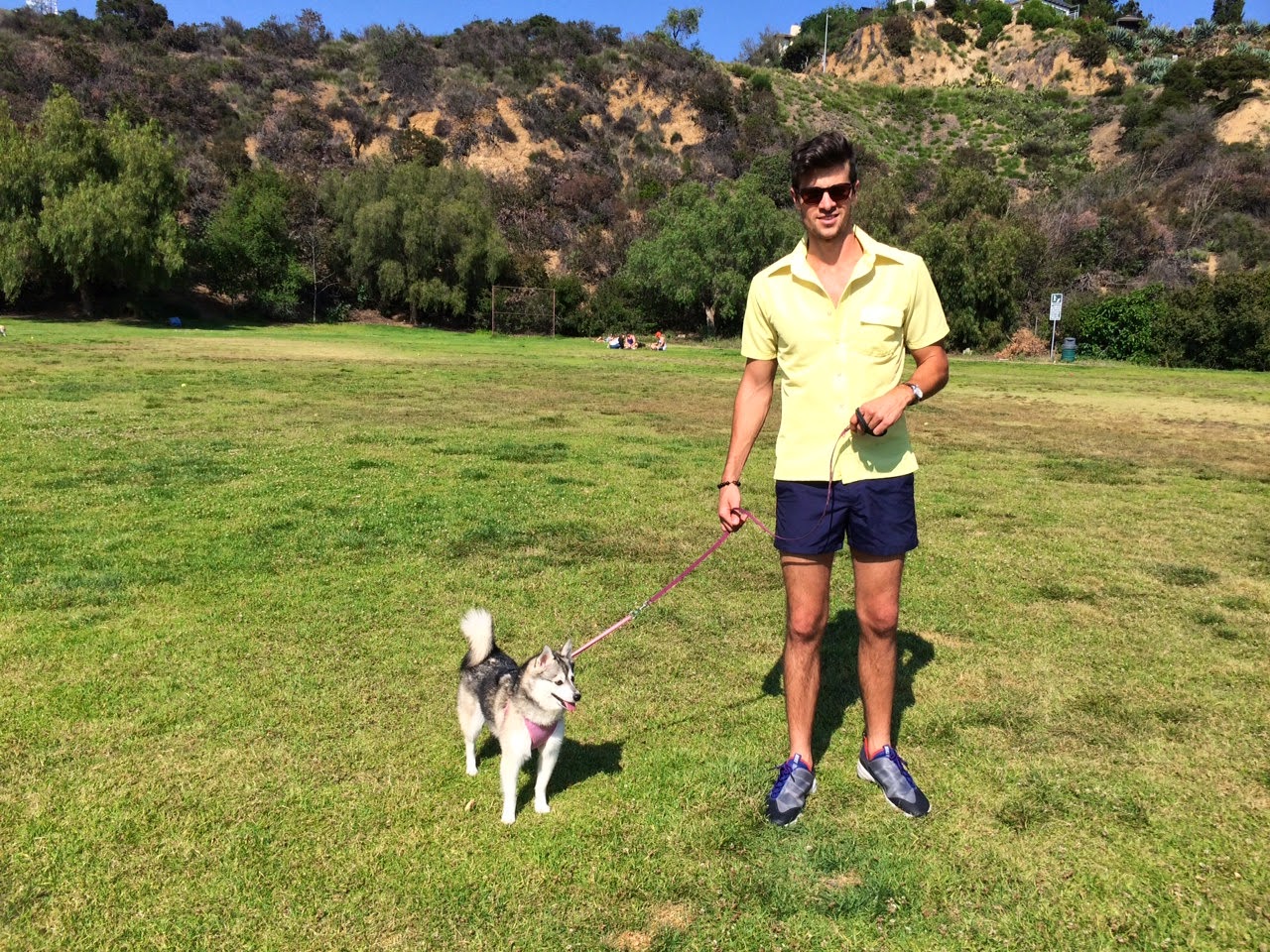 | Sunglasses: Lifetime Collective, Shirt: Vintage, Short Shorts: H&M, Shoes: Nike Footscape, Dog: Luca |