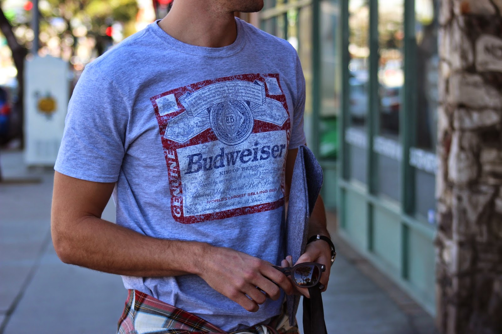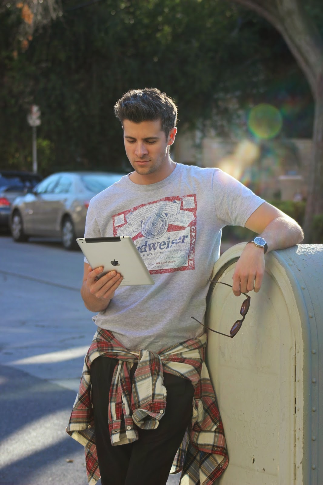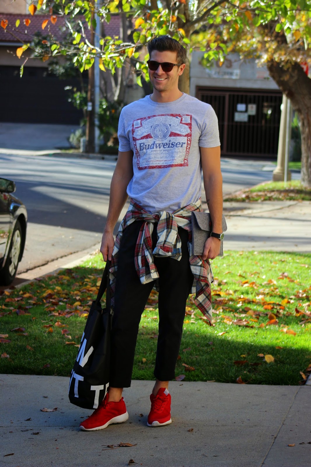 I’m wearing: Shirt: Budweiser (similar), Pants: All Saints, Shirt Belt: Zara (similar), Shoes: Greats Brand, Sunglasses: Lifetime Collective, Watch: Timex, iPad Sleeve: Bear Motion