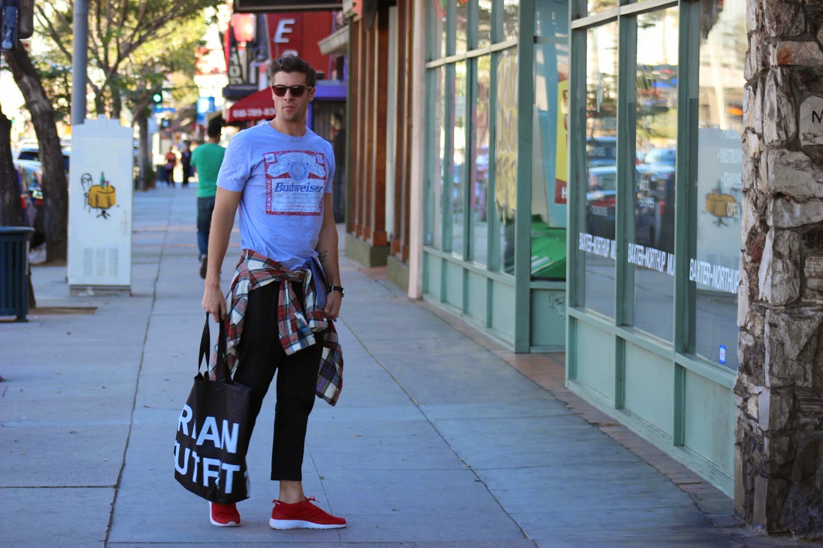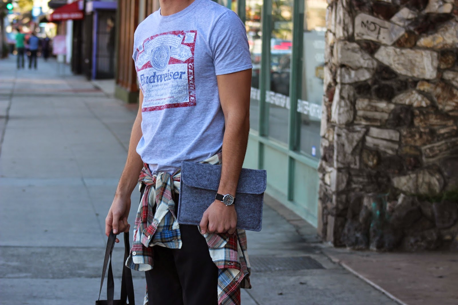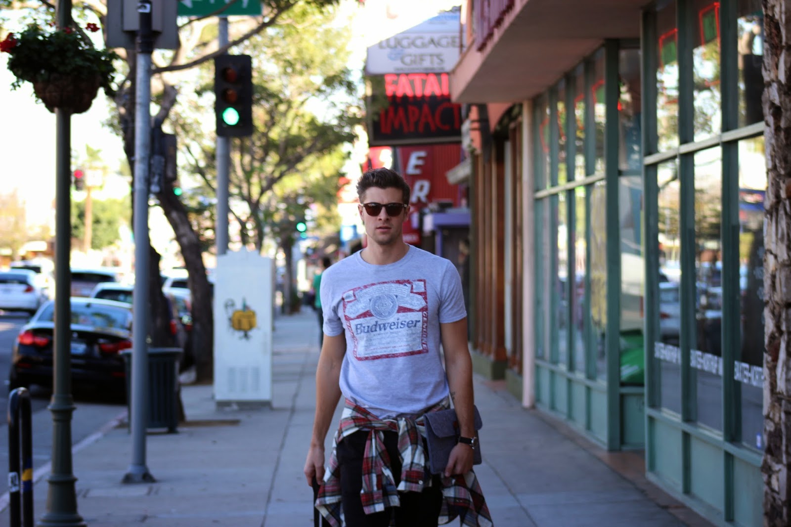I’m wearing: Shirt: Budweiser (similar), Pants: All Saints, Shirt Belt: Zara (similar), Shoes: Greats Brand, Sunglasses: Lifetime Collective, Watch: Timex, iPad Sleeve: Bear Motion