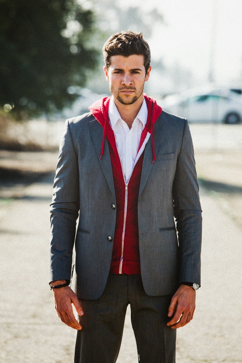 Next, I lost the black sweater and threw on a a zip up hoody that dresses the outfit down substantially. Again, it’s a suit so you’re going to maintain a certain level of class just by wearing the matching pieces, but the hoody takes you from the board room to the streets comfortably. You can choose to wear a tie or not with a hoody, it’s going to look great regardless.